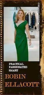 Robin, like Harry, wears a dressy green outfit that is quite flattering.