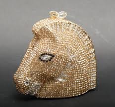 Chapter 29: Minister Chiswell is equally presumptuous when Strike calls him on his way to the protest; Strike should have reminded him he is a detective, not a hired security goon. And given everything Strike goes through tonight, I'm surprised he made dinner with Lorelei at all. Chapter 30 takes us to the Parliament offices, where the "Serpentine Goddess" in her Green Dress makes a stunning debut and rides in the fancy car to the party. I find myself wondering if Kinvara is genuinely jealous, or if this is an act for the benefit of her cover story. And is it Chiswell's attention to "Venetia" that disturbs her, or the fact that Chiswell says Raff is "smitten" with her. Note that Kinvara reacts to Chiswell's planned "chat" with Raff tomorrow by twisting the "chain on her ugly evening bag, which sported a horse's head picked out in crystals. Another pointer to a horse as a death omen. And, while I wasn't able to find a bag exactly like the one described, there are a surprisingly high number of crystal evening bags that are actual horses heads.