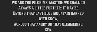 This is probably a complete coincidence, but I noticed that Last Poems was published in 1922 - the same year as Hassan, the drama in which we find The Golden Journey to Samarkand (I believe the poem itself was published earlier, but the drama is the larger context of it?). This is also the year that The Maid of the Silver Sea was adapted as a silent film! Probably all total coincidence and simply pointing to an early 20th century time period for the epigraphs, but still pretty neat (is it worth noting that it was also in 1922 that King Tutankhamen's tomb was discovered? With all the mentions of silver bringing to mind images of buried treasure...)